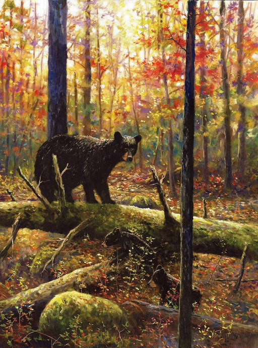 This 82 piece wooden jigsaw puzzle depicts a bear family in an fall forest. This puzzle has a straight edge, irregular piece shapes, and a handful ...