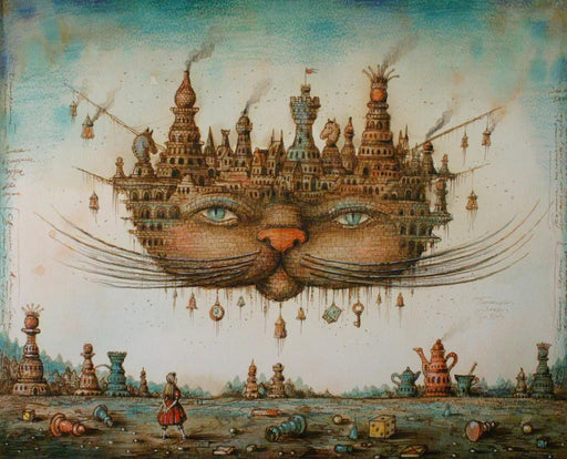 This is a 162 piece wooden jigsaw puzzle of an illustration of the Cheshire Cat from Alice In Wonderland by Russian neosurrealist Sergey Tyukanov. ...