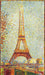 This 135 piece puzzle of Seurat's 1898 Eiffel Tower painting has many Paris-themed whimsy pieces (examples of pieces in picture), designed by Seattle artist Maria Berg. The puzzle image is an 1898 pointillist painting by Georges Seurat. Seurat was influenced by the 19th century new scientific discoveries about color vision to paint with colorful dots that average out to desired colors, a technique that came to be called pointillism, and which is also the basis for most modern color printing (where it is called halftoning). Seurat is perhaps most famous for his pointillist painting Sunday Afternoon on the Island of the Grand Jatte. This painting came just a few years later, and shortly after the Eiffel Tower was built in 1889 for the World's Fair. At the time it was built, it was the tallest tower in the world. Eiffel's plans for the tower had originally been rejected by Barcelona, and the Parisian public at first felt it was an eyesore. Now, of course, it is arguably the most famous icon of Paris. This puzzle has a straight edge, and its difficulty is about average. Like all our puzzles, the pieces are laser-cut from 1/4 inch thick wood. Packaged in a small blue box with magnetic clasp. Made in USA.